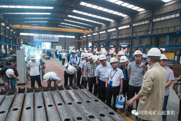 24日下午,河南礦山迎來了多批重要的客人,國家質(zhì)檢總局特種設(shè)備局相關(guān)領(lǐng)導(dǎo),中國重型機械工業(yè)協(xié)會相關(guān)領(lǐng)導(dǎo)、重機協(xié)會橋式起重機專業(yè)委員會300家會員單位和全國800家起重裝備整機制造商、配套件制造商及服務(wù)商分批蒞臨河南礦山,實地參觀考察河南礦山。公司創(chuàng)始人崔培軍、總經(jīng)理任海濤分別接待,并熱情的向來訪客人介紹了公司概況、工藝革新及機器人換人計劃等。
