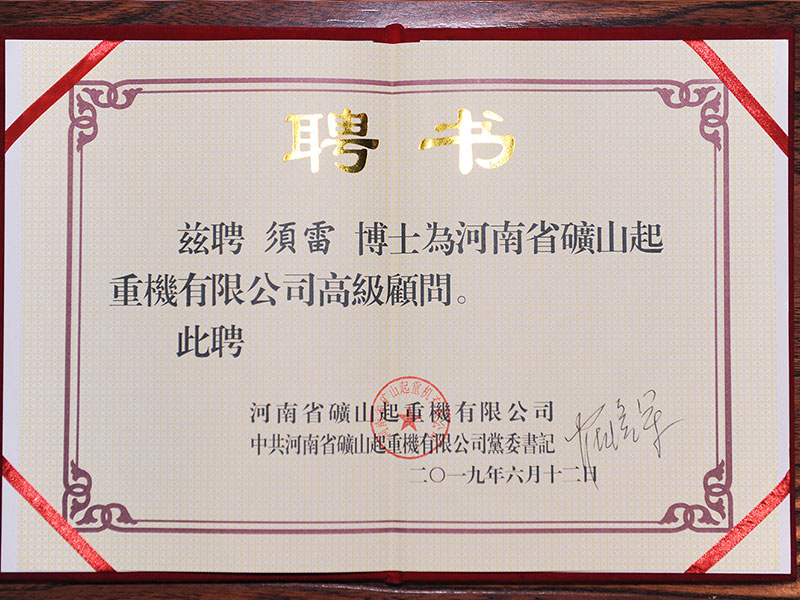 河南礦山聘任起重行業(yè)專家、工學博士須雷先生為公司高級顧問!